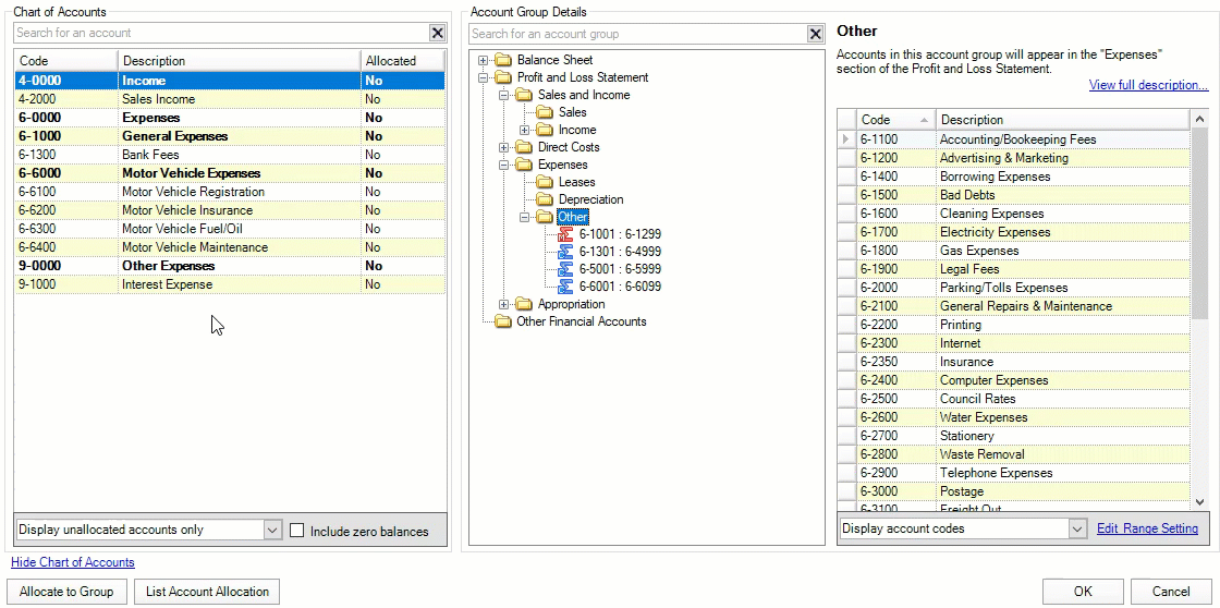 Once all accounts are allocated, click OK to save the changes made in allocating individual account to the account groups.