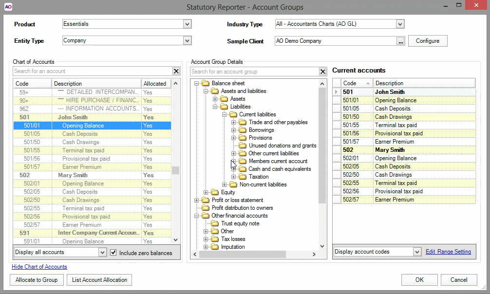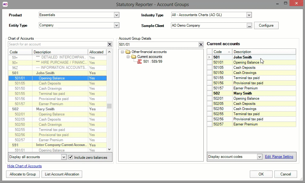 Statutory Reporter will prevent you from allocating accounts that have already been allocated to another group, therefore mapping account codes multiple times is best performed at a practice-level as this won't trigger a duplicate account mapping message.