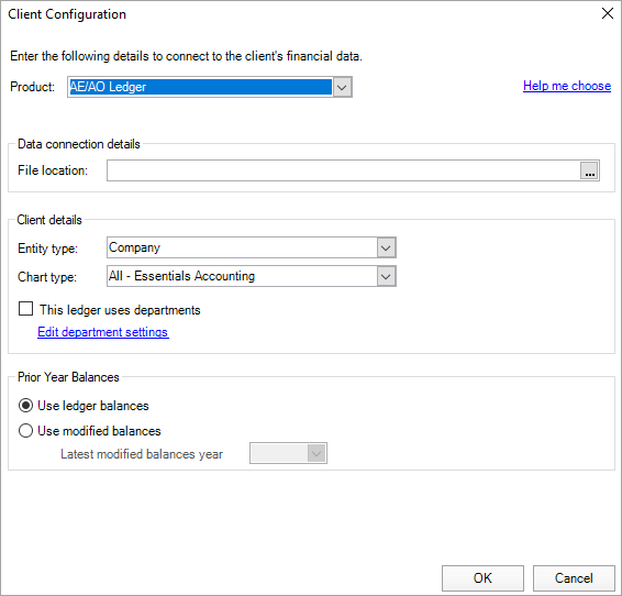 To configure an AE/AO Ledger file with Client Accounting, make sure: