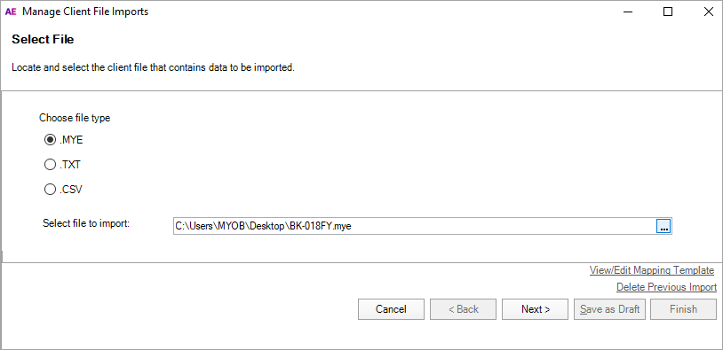 Select either .MYE or .TXT according to your exported file type.