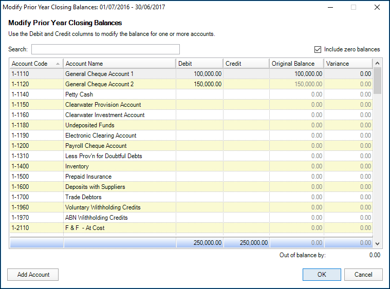 If you have multiple years to update, you'll need to do this separately as any changes to prior-year balances affect only the selected year. For example, if you modify the balance of the inventory account, you may have to make corresponding adjustments to the same or other accounts in subsequent years.