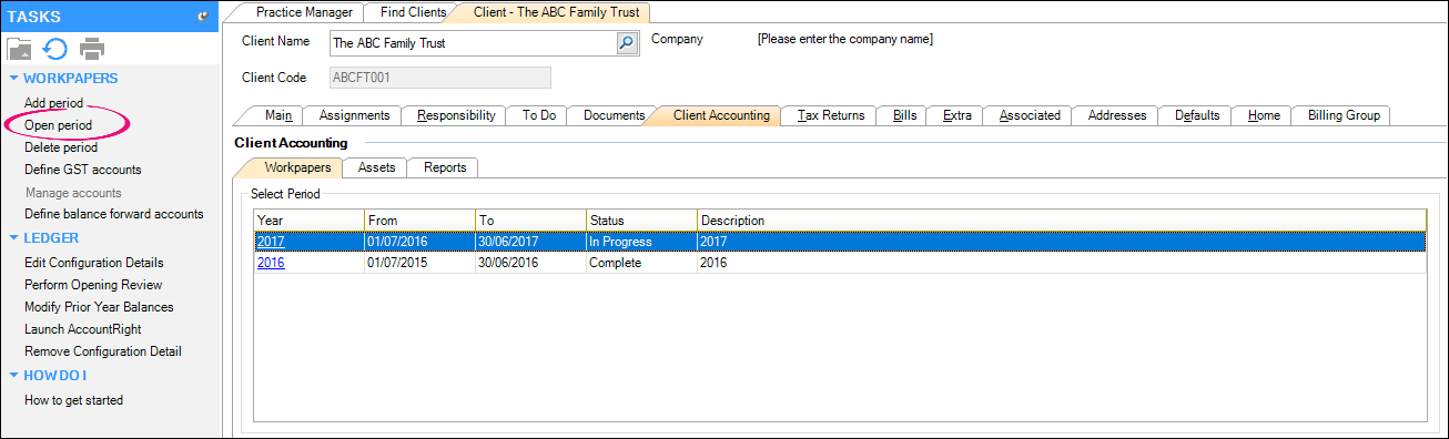 Select the period and click Open period on the TASKS bar.