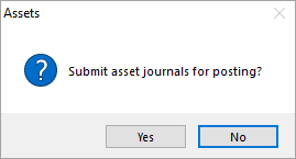 In the window Submit assets journals for posting? click Yes. The journals then appear in the workpaper period, ready to be posted.