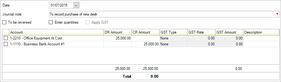 Click Add. This journal will be posted when you click Post journals & accounts on the TASKS bar.
