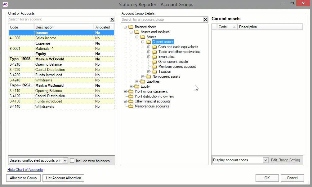 Click OK to save and close the Statutory Reporter - Account Groups window.