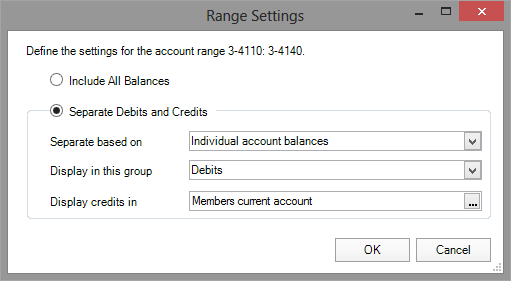 Right-click on an account range listed beneath the Members current account group, and select Edit Range Settings. The Range Settings window appears.