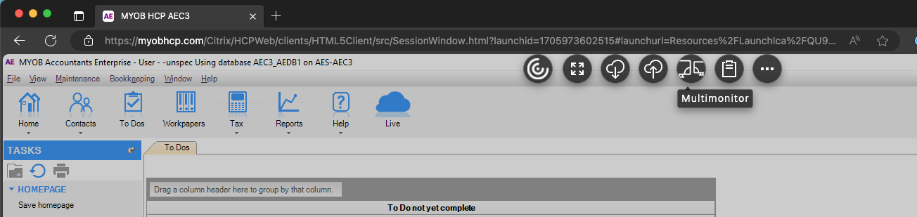 To launch multi-monitor mode, click on the control icon in the top centre of the window and select the "Multimonitor" option.