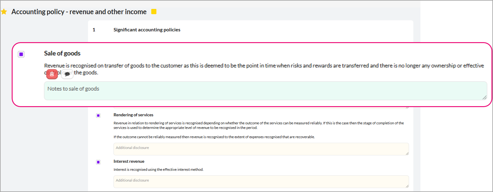 The yellow star indicates that the template will be included with the Financial statements when exported so it requires reconciliation as part of the workflow.