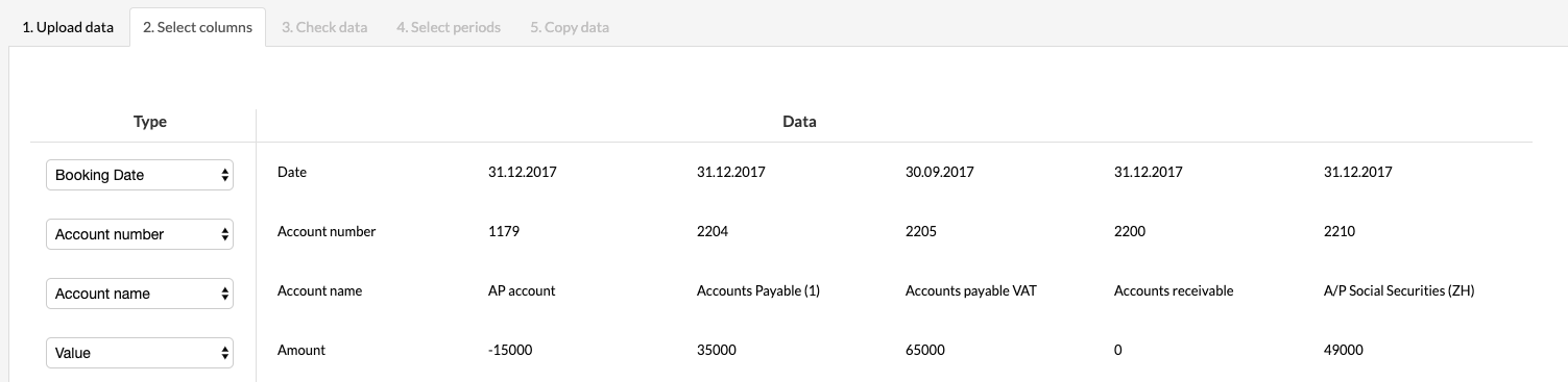 Choose Other value if you want to upload the data into the Silverfin program, and you can then name the columns yourself. Checking the items will confirm the selection.