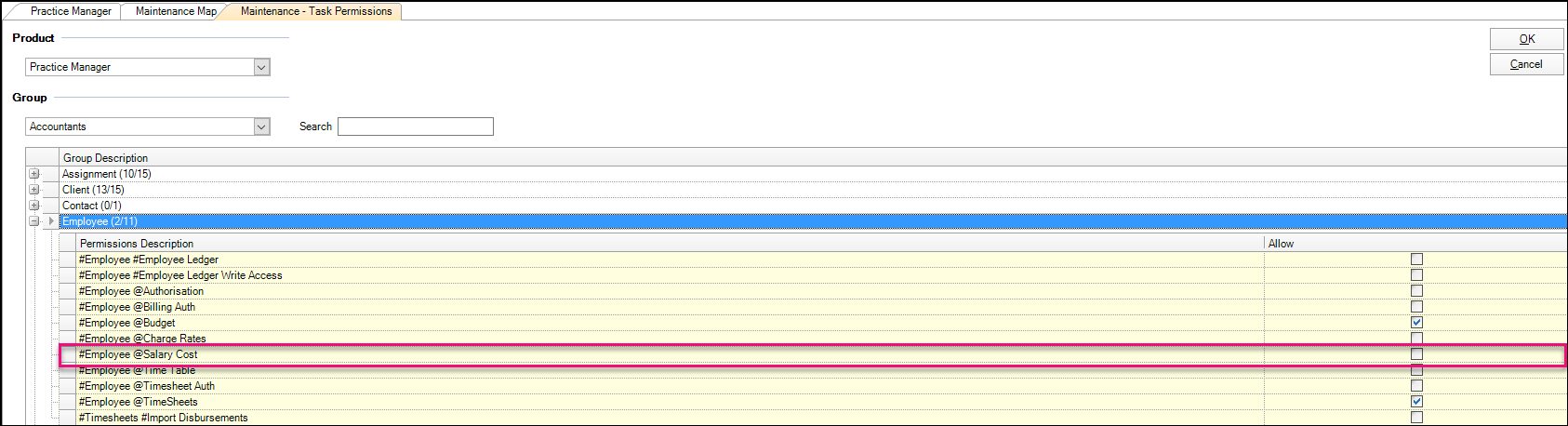 Employee cost figures can display on client wip reports such as Pre-billing reports. You can change security settings so that only the relevant security groups can see these figures on reports. See To change security settings for reports below.