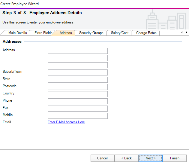 Enter the address and contact information for the employee in the appropriate fields.