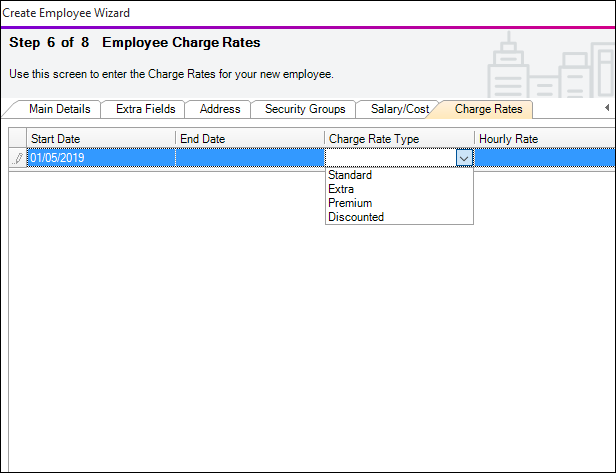 Enter the Start Date of the employee charge rate. Enter the date in the format dd/mm/yyyy or select it from the drop-down calendar.