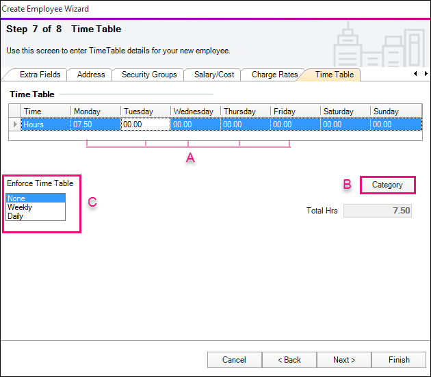 (B) Click Category to apply the Standard Hours of work set up for the employee category you assigned in Step 1.