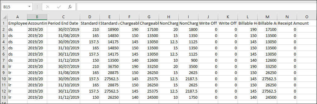 Add budget data for the original employee as well as for other employees. (In this case, we added 4 months of data for ds and added 6 months of budgets for lr).