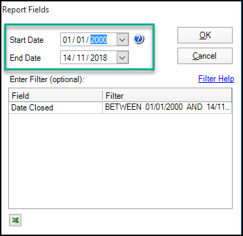 Change the Start Date field to 01/01/2000 to pick up all clients that meet the selected criteria.