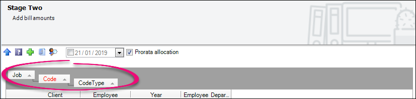 It's suggested that you group by Job (AO)/Assignment (AE), then Code Type (which is time and disbursement split) and then the Code (which is all your task codes). This makes it easier to bill at a higher level than individual transactions if not required.