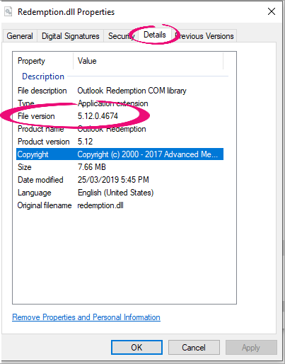 Check your Redemption.dll and Redemption64.dll file versions on the workstation and the server. If the versions are are 5.12.0.4674, you've successfully installed the hotfix.