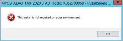 You may see the error "This install is not required on your environment" when installing the hotfix.