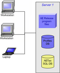 | Stand Alone PC | AE Tax can be installed on a single computer that contains your whole installation of MYOB Accountants Enterprise, data and programs. |