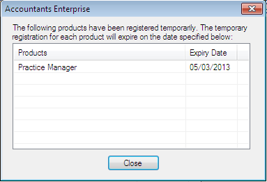 If you click Temporary, you can run AE Practice Manager as a single user until you contact MYOB Support to get your new registration code.