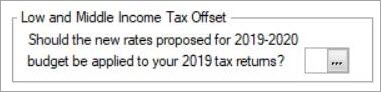 We've added a LMITO question in the Defaults tab of the Control record properties window—Should the new rates proposed for the 2019–2020 budget be applied to your 2019 tax returns? This setting applies to an individual return when you print a tax estimate.