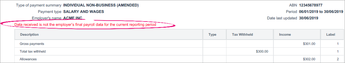 If no status indicator is displayed, this indicates the payer has submitted their payment summaries for the payee using STP reporting.