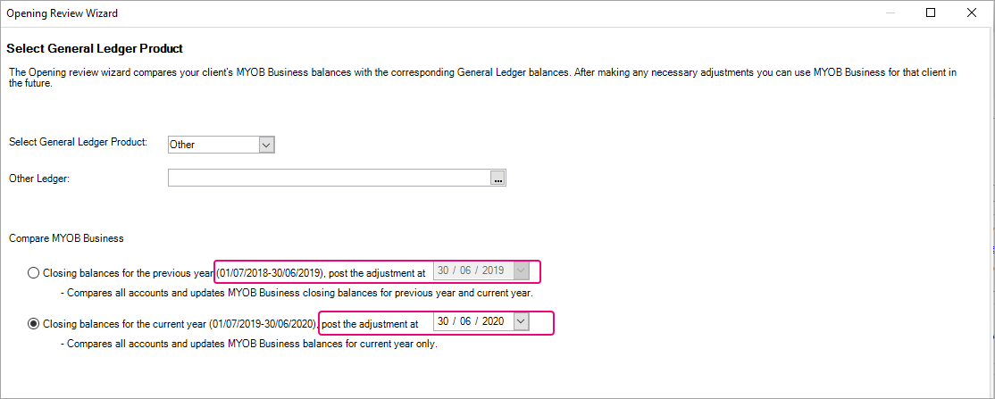 Opening balance review changes