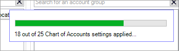 There is a display issue where the progress bar will always show a total of 25 accounts updated. This will be fixed in a future release. In the meantime, all your customised account groups in the chart of accounts will still be copied in the background despite the progress bar showing a total of 25.