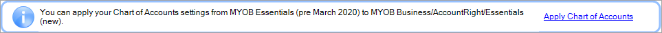 To apply the customized chart of accounts to your New Essentials/MYOB Business ledger