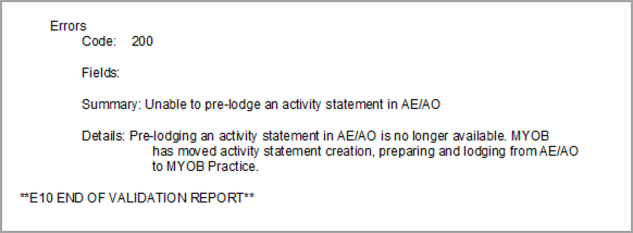 Activity statements have moved to MYOB Practice. You can no longer lodge them from AE/AO. You’ll see a rejection message when you try to pre-lodge or lodge an activity statement.