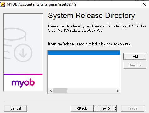 If you are installing MYOB AE Assets for the very first time, MYOB AE Assets 2.4.9 is all you need to install.