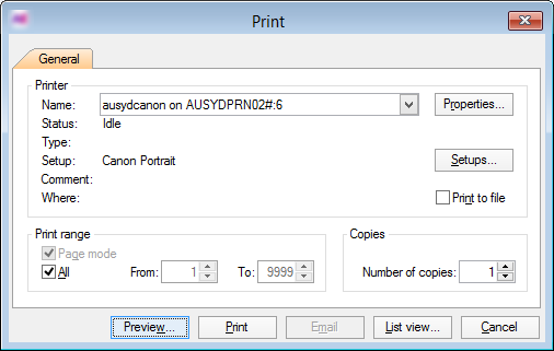 Pay attention to whether the report is MYOB - Landscape or MYOB - Portrait.Click Cancel.