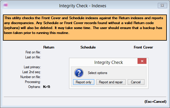 The Integrity Check window opens.The default master password in AE Tax is ASSERT.