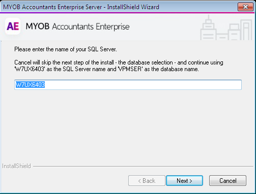 Ensure that whoever performs the installation has access to the SQL server instance used by MYOB AE. If they don't have administrator access, they will need the SQL server administrator login id and password.
