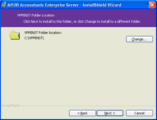 Click Install to start the installation wizard. The VPMINST Folder Location window opens.