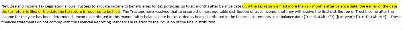 In the format Notes - Distributions we've added the highlighted text to the paragraph