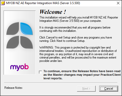 Select MYOB AE Reporter 3.5.500 - Install and download the file to your server.