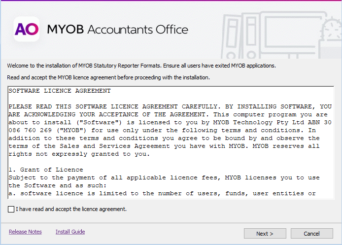- Download the MYOB AO Statutory Reporter 5.4.32 (v19) - Update and save it to your computer.