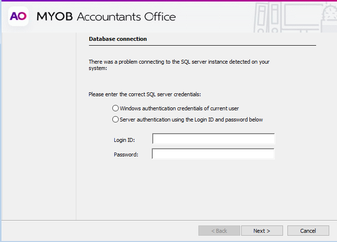 - Enter the Login ID and Password for the SQL System Administrator ('sa' user).