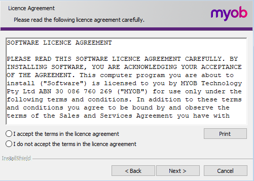 - Double-click the .exe file to start the installation. The Licence Agreement appears