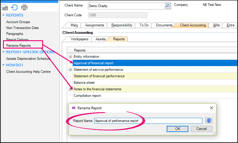 If you don't rename them, the contents page will still refer to the financial report/statement instead of the performance report.
