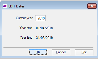 Select Utilities > Control Record > Dates.