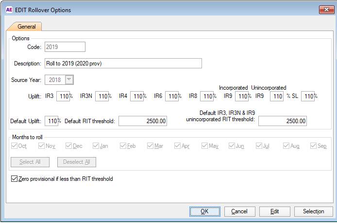 If ticked, the RIT field under the Tax section of the return header shows the total of the provisional amounts in the calculated column of the balances area less uplift.