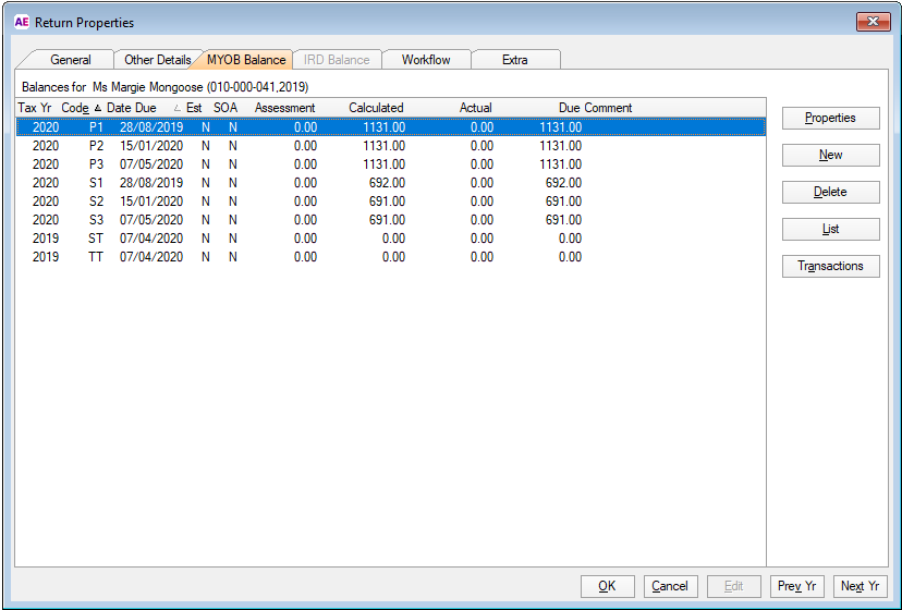 If not ticked, the Prov Tax field is updated after the end of year rollover and when the return is finalised in the Tax Returns System.