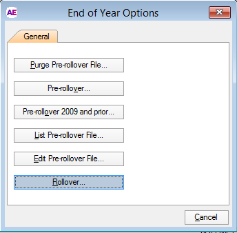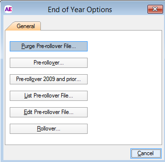 At the End of Year Options window click Purge Pre-rollover File.