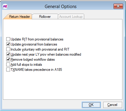 When ticked, the LY Prov field in the tax section of the return header will update with the value of all the provisional and voluntary payments (i.e., actuals) attached to P1, P2, P3 and V1, V2, V3 balance codes.