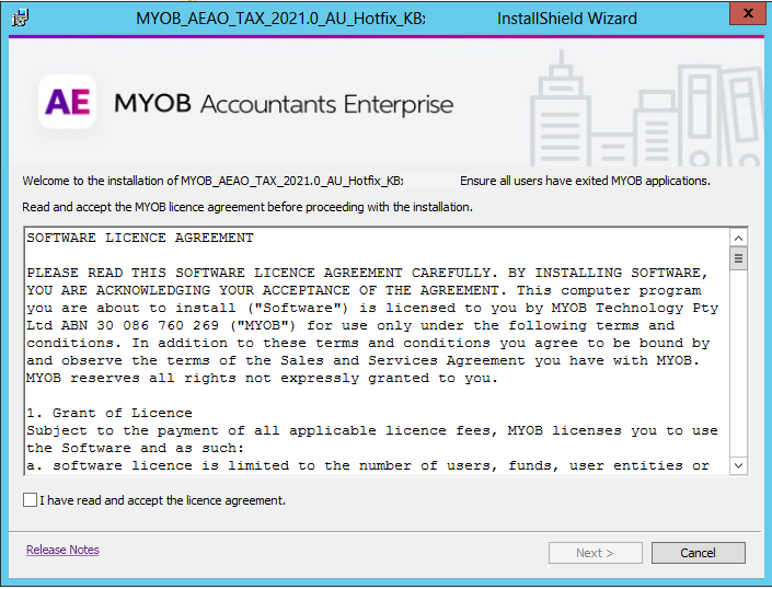 This hotfix is replaced by MYOB Tax 2021.0b SP2—Install guide and release notes (Australia). MYOB Tax 2021.0b SP2 includes the changes from this hotfix.