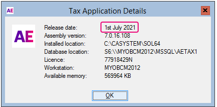 Tax 2021.0 hotfix KB66322434 (Australia)