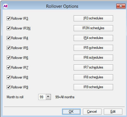 Click each of the schedule buttons to select the schedule types to be rolled over with the returns, as shown below: