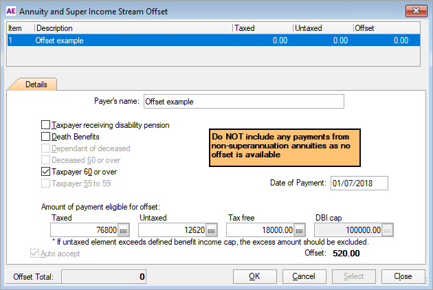 Applying the Australian Super annuity/income stream offset and Defined benefit cap